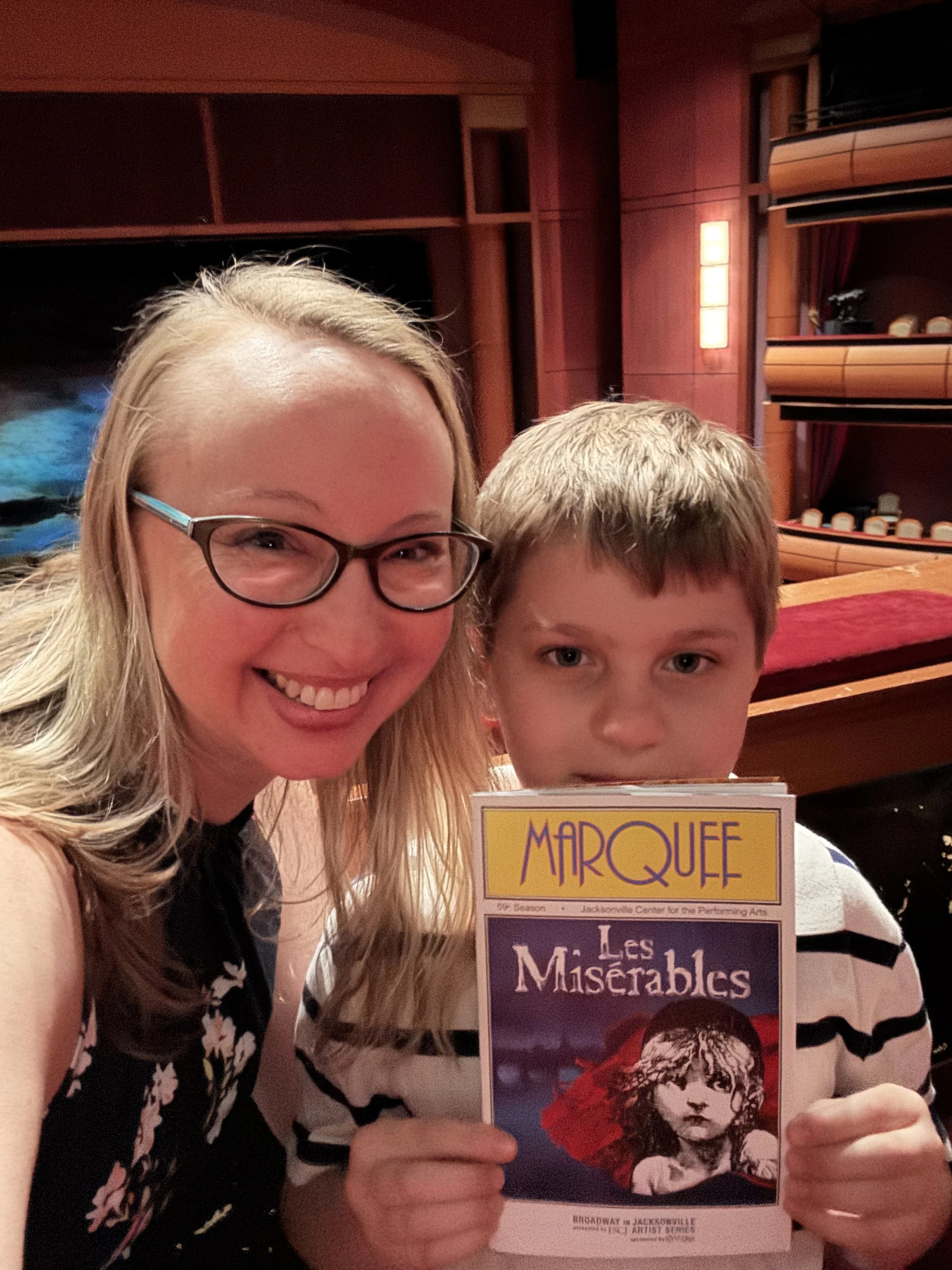 In April we wrapped up our season tickets to the Broadway series that comes through Jacksonville with two shows, both of which I ended up taking Asher to. One was Les Mis, my all time favorite Broadway production, and one was Michael Jackson the Musical. It had been the plan all along to take one of the boys to Les Mis with me—Chuck has seen it, and while he likes it, he didn’t feel a burning desire to see it again. We watched the movie as a family so the boys could get a sense of the story (they already knew the basic plot because I talk about it all the time), and Asher was the one after the movie who said “I really liked the music in that, I liked how it repeated the same melody throughout the whole show.” Aidan’s response was “It was good. But there’s no way I’m going to sit through something that long!” So Asher went as my date and loved it. I was shocked at how well he tracked with what was going on, who the characters were, and how the story unfolded. Although I was about his age when I saw it for the first time, so I probably shouldn’t have been surprised! The innkeeper and his wife were his favorite, and he really liked the song Red and Black which is one of my favorites too. Sharing the things you love most with your kids and having them love them too is priceless! He enjoyed MJ: The Musical, but not nearly as much. He wasn’t super familiar with Jackson’s music, and didn’t know anything about his past or who he really was, but he enjoyed the dancing and music. I’m so thankful I got to share these shows with him this year (he also came with me to Peter Pan, so out of our 5 shows Asher saw over half of them this year!)