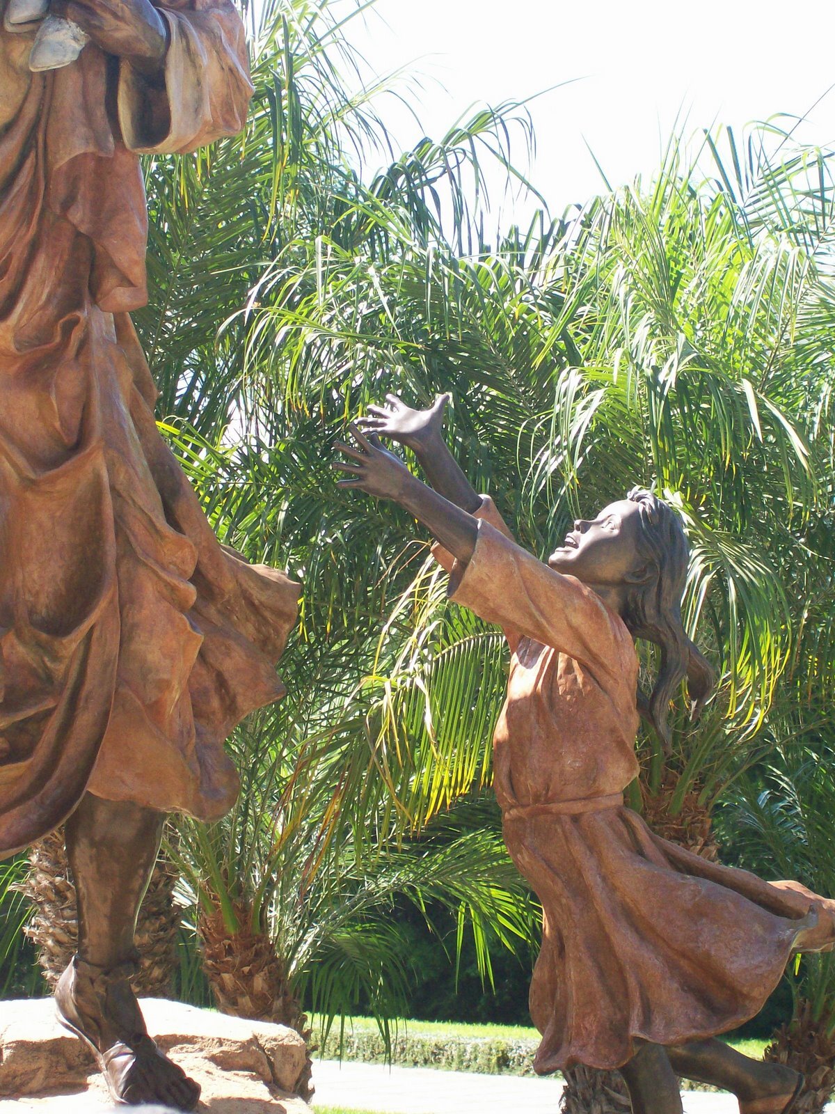 Think about it...when you imagine Jesus looking at you, what expression is on his face? And where in life did you learn to view Jesus in that way? I think for most of us, we might need to expand our vision of Jesus to encompass a bit more of the joy, delight, laughter, and freedom we have in him! And to close, here's one of my very favorite images of Jesus (and really you can't even see Jesus in it)...it's a statue at the Crystal Cathedral in Southern Cal...may we be like this child, running without shame, into the arms she knows will catch her.